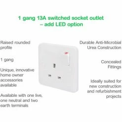 SCHNEIDER ELECTRIC Schneider Lisse Moulded Switched Single Power Socket 13A GGBL3010 White 10 Pack