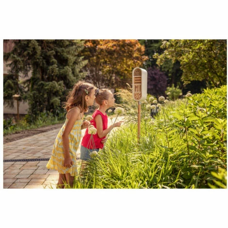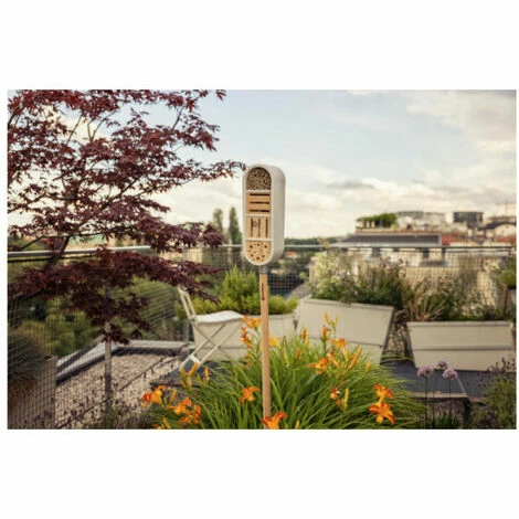 Presentation: This GARDENA ClickUp insect hotel – 11370-20 provides a safe and healthy habitat for insects. It is ideal for attracting and promoting biodiversity in your garden. Ultra-design, it decorates it with a modern, sleek piece of furniture while doing the most good for the environment. The GARDENA insect hotel is made from 100% FSC® certified wood. It offers 4 chambers, 2 for wild bees, 1 for butterflies and 1 for ladybugs which are endangered insects today. Each chamber has been developed based on expert advice and for the greatest comfort of the insects: they are no longer than 10 cm, are made of bamboo, have no bread heads and each hole is clean and smooth. The roof and frame of the GARDENA Insect House have been biologically lacquered to allow for optimal use all year round. ClickUp! is GARDENA’s garden decoration range. It includes various interchangeable decorative elements that attach to the same handle or stand: a flower pot, a lantern, a garden torch, an insect hotel, a bird bath, a solar lamp and a bird feeder. Like all the other decorative objects in the ClickUp! range, the insect hotel connects in one click to the wooden handle or balcony support. This innovation is patented and guarantees a stable and secure connection between the objects and the handle. Benefits : Provides a healthy habitat for insects that today have difficulty finding reliable nesting and overwintering sites 4 separate chambers to accommodate bees, butterflies and cockroaches Ideal for promoting biodiversity in the garden Quality materials 100% FSC® certified wood Designed with the help of experts Lacquered frame and roof for year-round use! Can be combined with the other products of the Gardena ClickUp! range Features: Height (without handle): 36.8 cm Depth: 11 cm Width: 14.9 cm To be used with the ClickUp! wooden handle. GARDENA (ref.11300-20) To be used with the ClickUp! GARDENA balcony stand (ref.11410-20) Color: white and beige Ref. 11370-20 Packaging: One GARDENA ClickUp insect hotel – 11370-20Delivered in its original packaging Warranty: 5 years