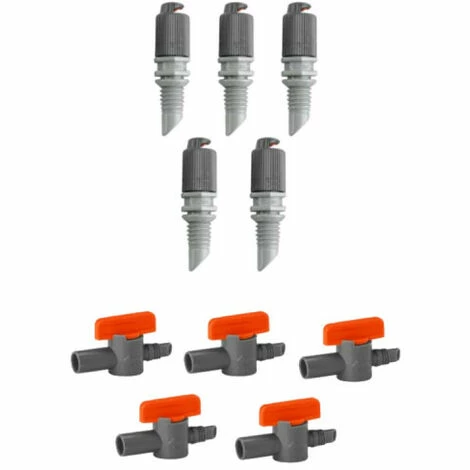 Presentation : The GARDENA pack – Micro-Drip 180° Micro-Sprinklers 5 pcs – Regulator 5 pcs allows fine spray irrigation of your plants for the most delicate irrigation while regulating the flow rate and range to optimize the amount of water according to your needs. The GARDENA Micro-Drip system is a reliable irrigation method that will allow you to water your plants in a targeted manner while saving water. Benefits : Micro-Drip 180° Micro-Sprinklers: Fine spray watering in flower beds Long watering range (approx. 6 m) Contains 5 micro-sprinklers Can be extended with the extension hose (not included) Adjust the spray range with the control valve (not included) Regulator for micro-sprinklers Micro-Drip : Optimize the amount of water according to your needs Contains 5 control valves Fits on the micro-sprinkler extension tube (not included) Features: Micro-Drip 180° micro-sprinklers: Quick & easy” technology : no Watering diameter : 6m approximately Watering length : 3m approx. Contains 5 micro-sprinklers Micro-Drip System Ref. 1367-29 Regulator for Micro-Drip sprinklers: Quick & easy” technology : no Micro-Drip System Flow rate adjustment Adjustment of the range Quantity : 5 pieces Ref. 1374-29 Packaging: One pack GARDENA – Micro-Drip 180° Micro-Sprinklers 5 pcs – Regulator – 5 pcsDelivered in its original packaging