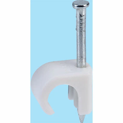 White polypropylene cable clips for 7 to 9mm diameter round cables.