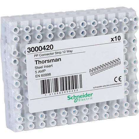 This 5A rated 12-way terminal strip is made from tough but flexible self-extinguishing white polypropylene. The design and construction of the terminal block makes it easy to snap-off the desired amount, making installation quicker and easier.