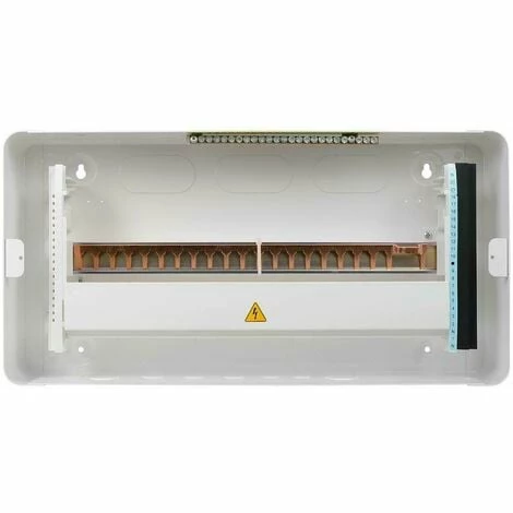 - Empty consumer unit supplied with earth/neutral terminal block