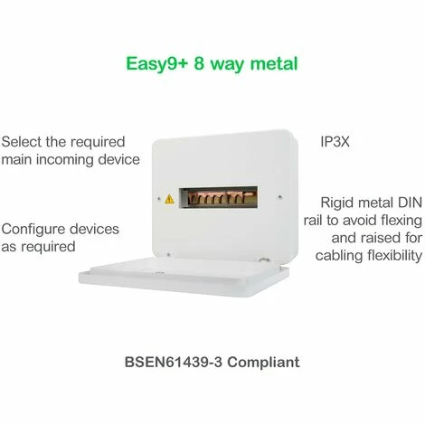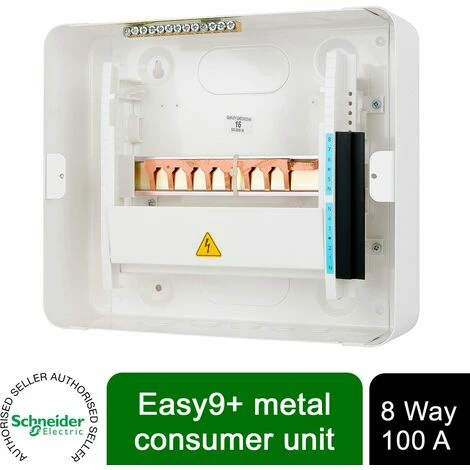 Package Includes: 1x Schneider Easy9+ 8 Way Metal Consumer Unit