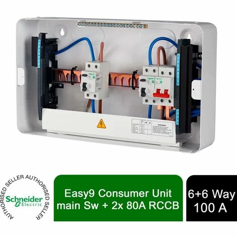 Package Includes: Schneider Electric Easy9+ 100A Switch 80A and x 2 Residual Current Device