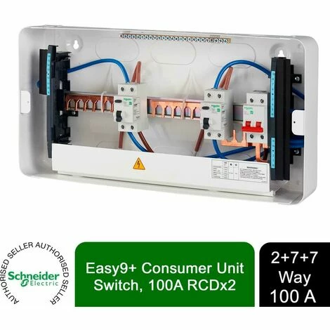 Schneider Electric Easy9+ 2+7+7 100A Switch, 100A RCDx2 Consumer Unit