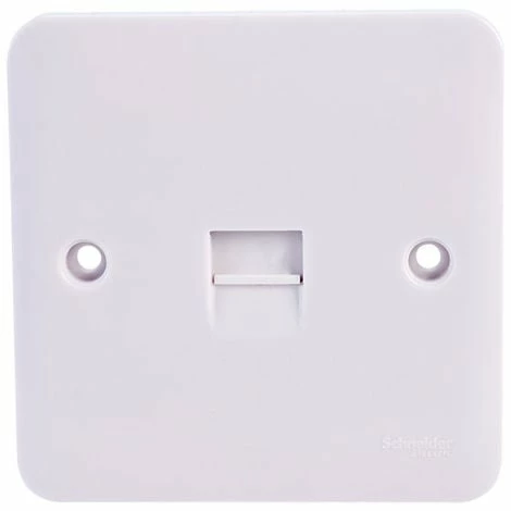 A 1 gang white BT master telephone socket matching Schneider Electric’s Lisse range of plate-switches and wall sockets.