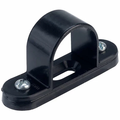 Tower black spacer bar saddles for 25mm diameter round PVC conduit from Schneider Electric.