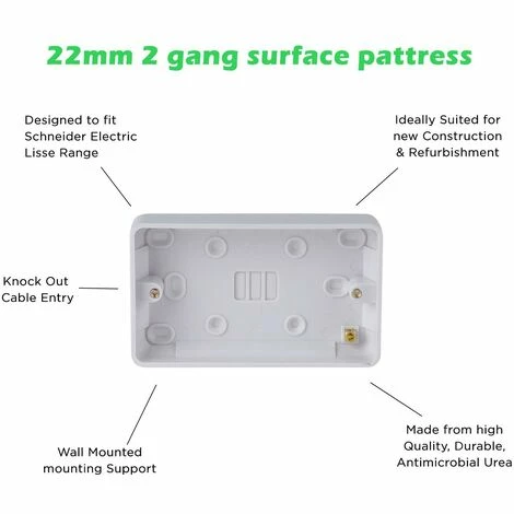 Package Includes: 1x Schneider Electric Lisse White Moulded, 25mm double surface pattress box