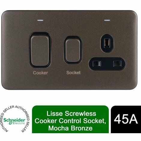 The smooth, modern lines of Lisse Screwless Deco offer an understated elegance to complement today’s interiors in this single cooker control unit with the socket in a mocha bronze finish. Whatever your taste, you can express your personal sense of style in the home down to the finest detail through the comprehensive range of finishes Lisse Screwless Deco has to offer.