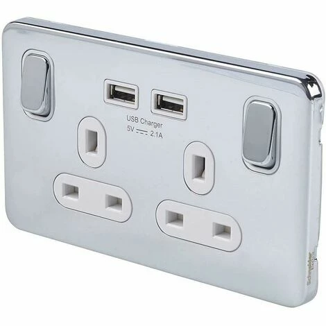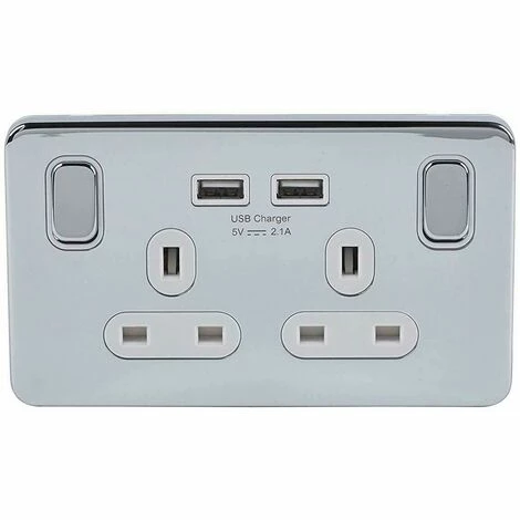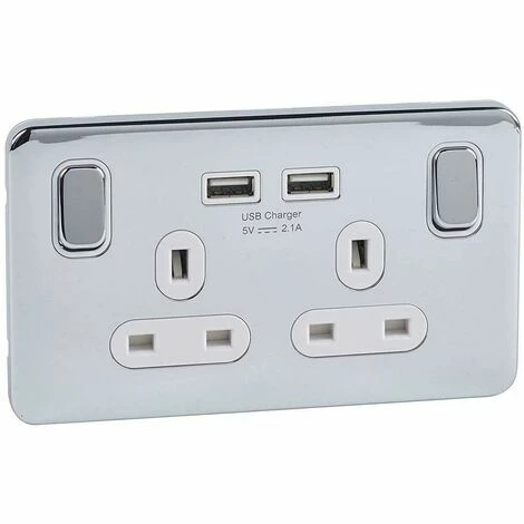 The smooth, modern lines of Lisse Screwless Deco offer an understated elegance to complement today’s interiors in this double switched power socket with two USB charging ports in a polished chrome finish. You can express your personal sense of style in the home down to the finest detail through the comprehensive range of other finishes and the technical features the USB sockets have to offer.