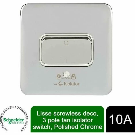 The smooth, modern lines of Lisse Screwless Deco offer an understated elegance to complement today’s interiors in this single, three-pole, fan isolator switch, in a polished chrome finish. Whatever your taste, you can express your personal sense of style in the home down to the finest detail through the comprehensive range of finishes Lisse Screwless Deco has to offer.
