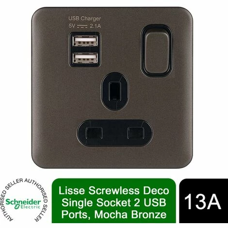 - Style: Lisse Screwless Deco Switched Socket with USB