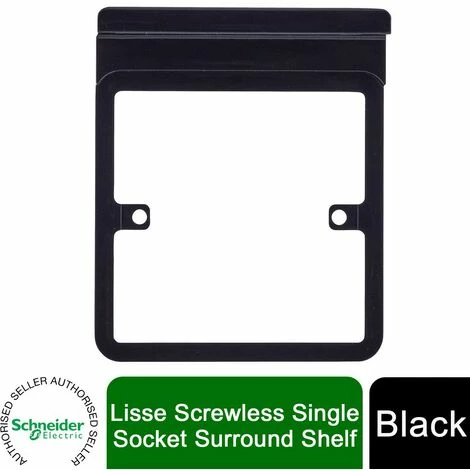 Package Includes: 1x Schneider Electric Lisse Single Socket Surround with Shelf – Black