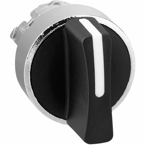 A black selector switch head from Schneider Electric’s ZB4BD series.